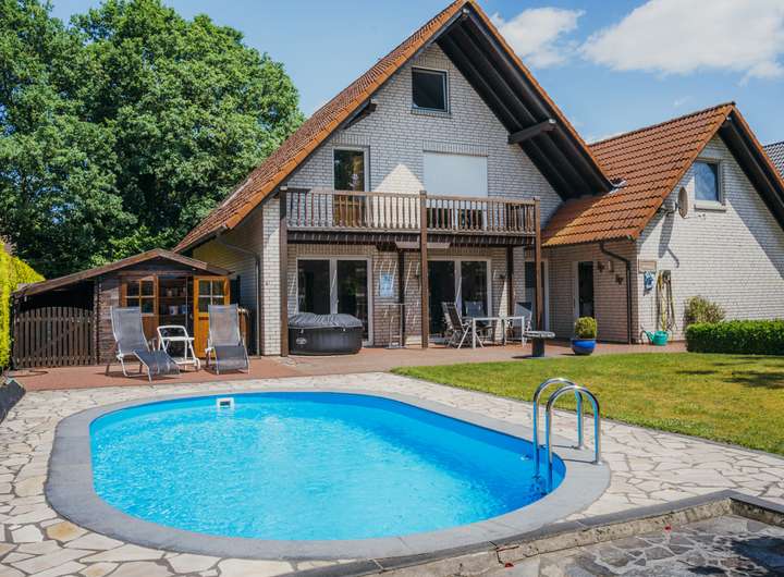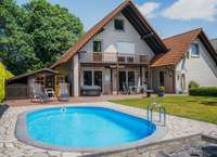 Willkommen in Ihrem neuen Zuhause! Dieses charmante Einfamilienhaus in Garrel / Nikolausdorf bietet Ihnen ein gepflegtes Umfeld und eine Vielzahl attraktiver Merkmale. Im Jahr 1995 erbaut, erstreckt sich dieses Haus über zwei Etagen und präsentiert sich auf einem großzügigen, ca. 756 m² großen Grundstück mit einem wunderschönen Garten. Mit einer Wohnfläche von ca. 161 m² und zusätzlichen ca. 36 m² Nutzfläche bietet das Haus ausreichend Raum für die ganze Familie. Die Immobilie verfügt über insgesamt fünf Zimmer, darunter vier gemütliche Schlafzimmer. Ein lichtdurchflutetes Bad mit Fußbodenerwärmung, einer Eckbadewanne und Dusche verwöhnt Sie mit zusätzlichem Komfort. Die offene Galerie und der ausgebaute Dachboden sorgen für ein offenes Raumgefühl und bieten flexible Nutzungsmöglichkeiten. Die zeitlose Einbauküche aus Buche lädt zu gemeinsamen Kochabenden ein, während der beheizte Pool im gepflegten Garten für Entspannung sorgt. Highlights dieser Immobilie sind die moderne Videoüberwachungsanlage, die mit einem Smart-Home-System gekoppelt ist, und der SAT-TV-Anschluss. Das gesamte Grundstück ist umzäunt und bietet somit Sicherheit und Privatsphäre. Für Ihre Fahrzeuge steht eine geräumige Garage bereit, während ein weiterer Geräteschuppen und ein Poolhäuschen zusätzlichen Stauraum schaffen. Zur Ausstattung gehören weiterhin doppelt verglaste Kunststofffenster, Jalousien, Plissees und eine Holzwangentreppe, die das Wohnambiente abrunden. Genießen Sie die Ruhe einer Feldrandlage, während Sie auf Ihrem Balkon oder der Terrasse, die zum Entspannen einladen, die Abendsonne genießen. Dieses Einfamilienhaus vereint Komfort und Funktionalität und wartet darauf, Ihr neues Zuhause zu werden. Vereinbaren Sie jetzt eine Besichtigung und lassen Sie sich von dieser einzigartigen Immobilie überzeugen!