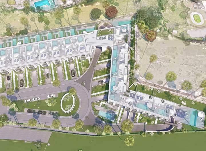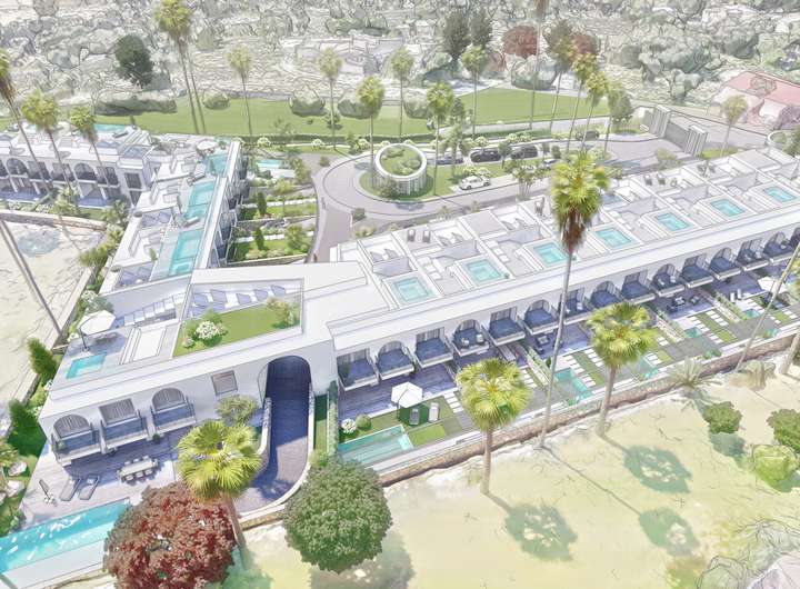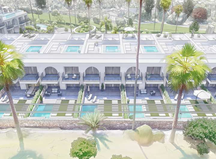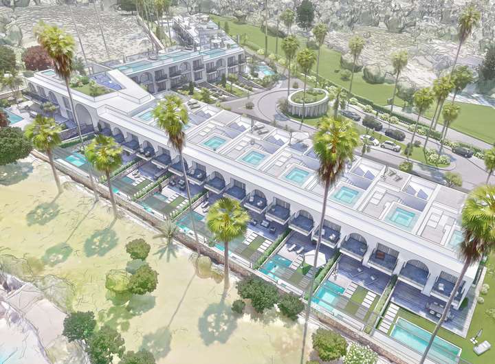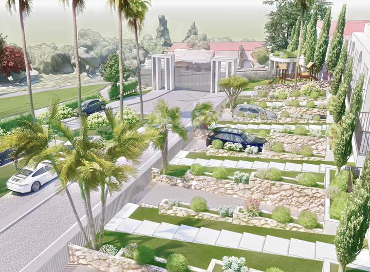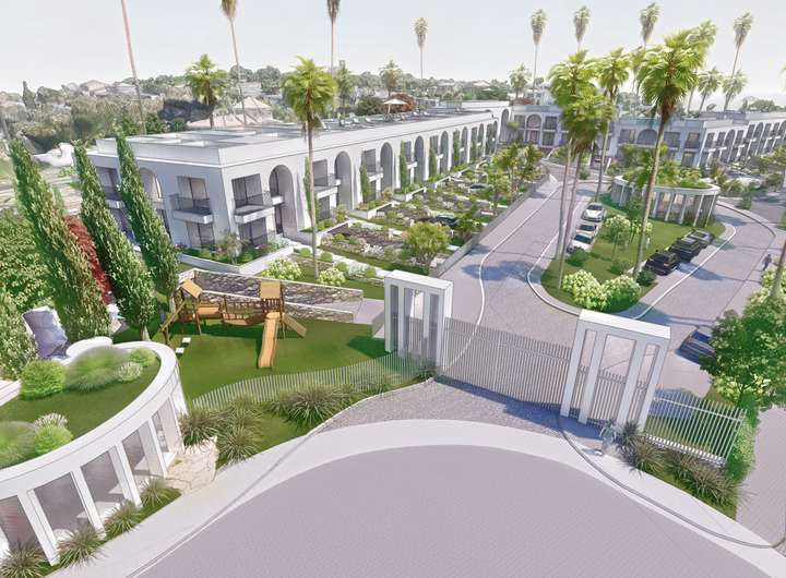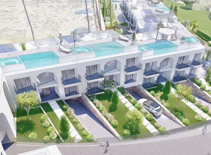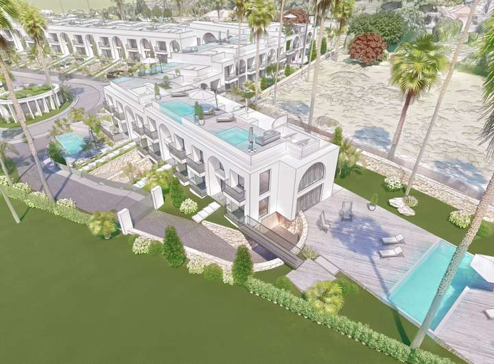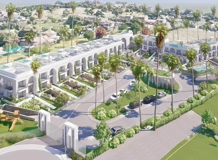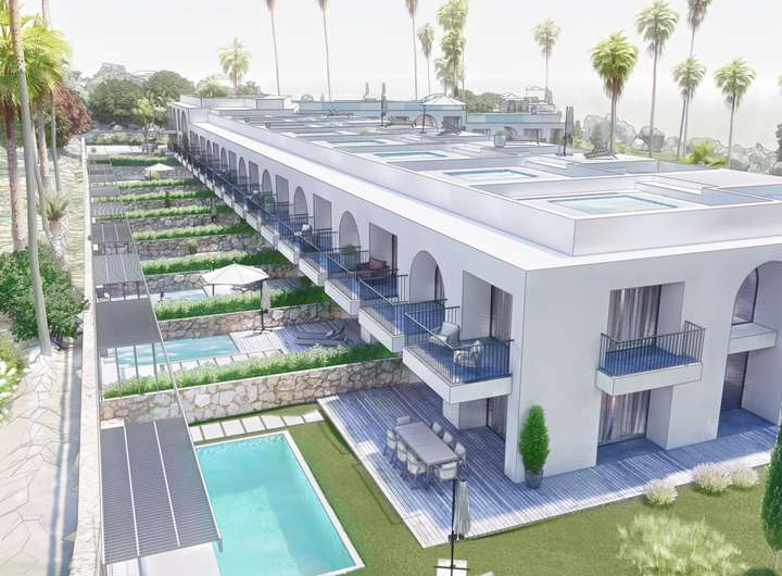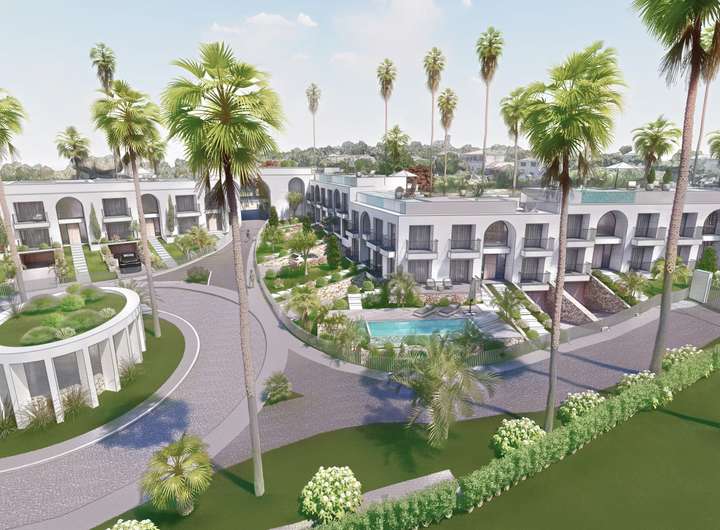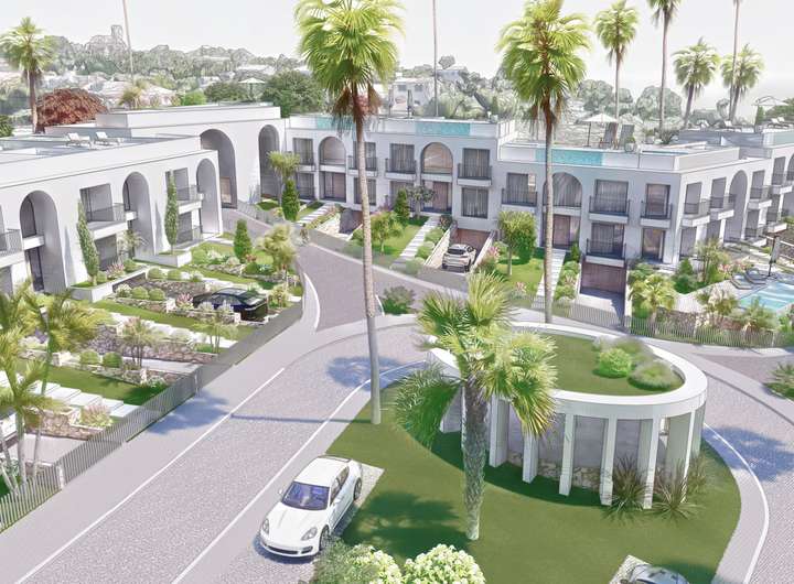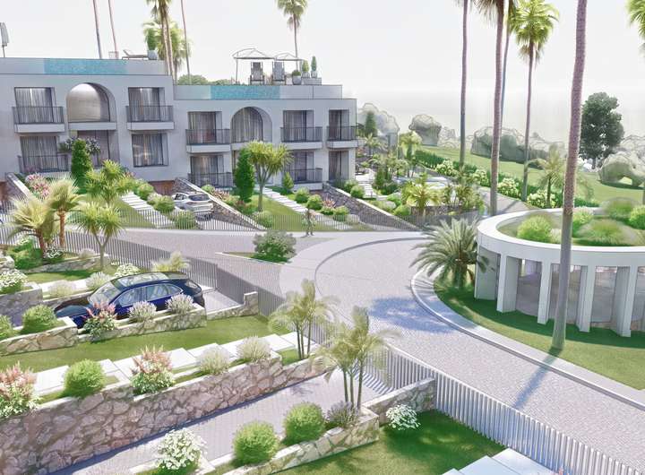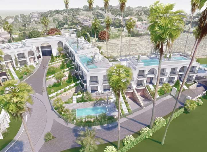Geschlossene Wohnanlage mit 15 Häusern, freiem Blick auf Berge und Meer