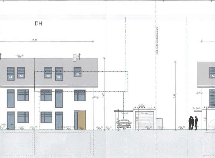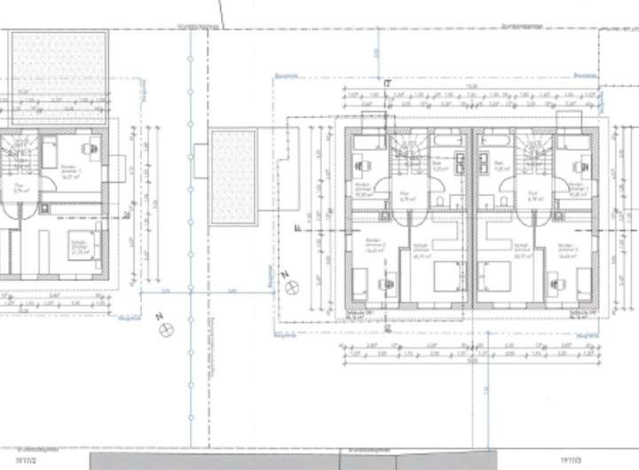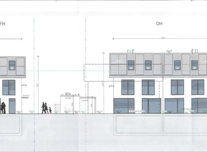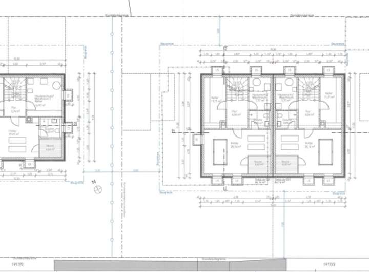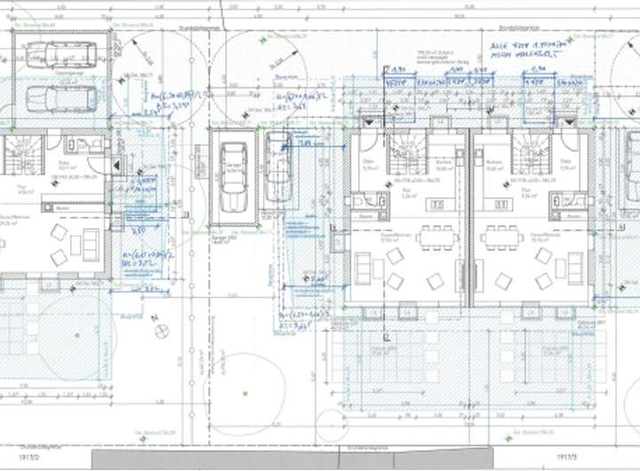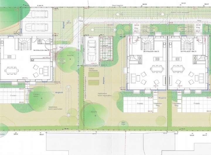 Die gesamte erstellbare Wohnfläche für das EFH und das DH liegt bei ca. 570m². Die Gesamtnutzflächen der Gebäude bei ca. 986m²
