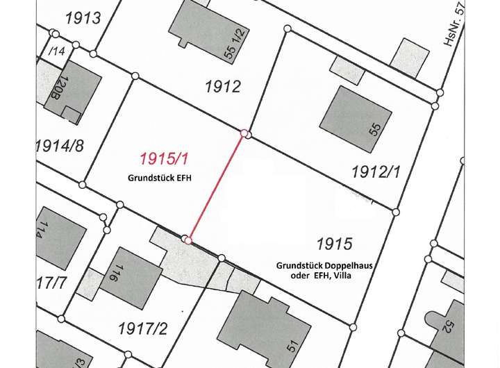 Das gesamte Grundstück hat eine Größe von ca. 1609m². Das Baugrundstück des Einfamilienhauses kann real geteilt werden mit Zufahrtsrecht. Die Das Doppelhaus auf dem vorderen Teil des Grundstücks kann nach WEG aufgeteilt werden.