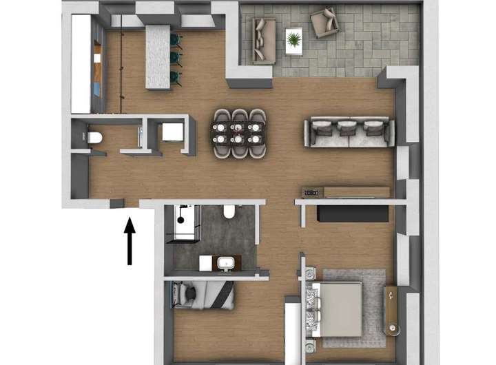 Die rund 10,9 m² große Dachterrasse ist ein echtes Highlight: teils überdacht, mit viel Platz für eine Lounge-Ecke, Pflanzen oder Sonnenliegen. Sie ist dein privater Rückzugsort über den Dächern – ein Ort der Ruhe und Weite, an dem du entspannen, genießen und durchatmen kannst. Der Aufzug bringt dich barrierefrei direkt ins Staffelgeschoss – bequem, komfortabel und altersunabhängig nutzbar.