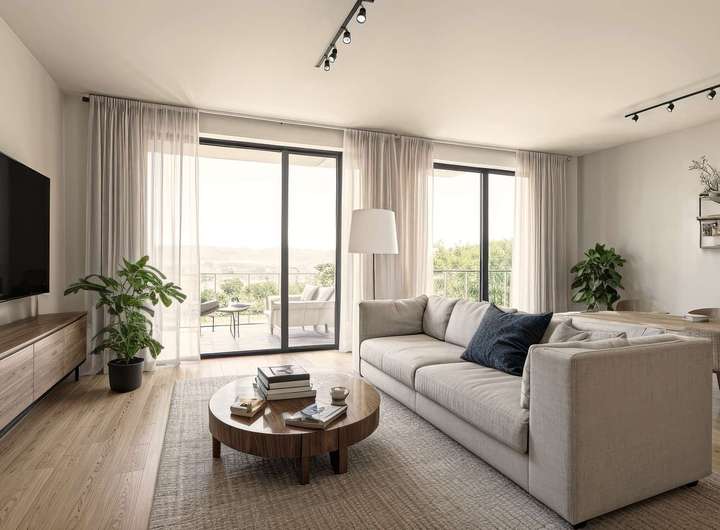 Das offene Wohnkonzept schafft ein luftiges Raumgefühl, das durch bodentiefe Fenster zusätzlich unterstrichen wird. Der Wohn- und Essbereich wird so zum zentralen Treffpunkt mit viel Licht, Ausblick und Atmosphäre. Neben dem geräumigen Schlafzimmer stehen dir ein Kinder- oder Arbeitszimmer sowie ein weiteres halbes Zimmer zur Verfügung, das sich ideal als Büro, Ankleide oder Gästebereich nutzen lässt – ganz so, wie es zu deinem Leben passt.