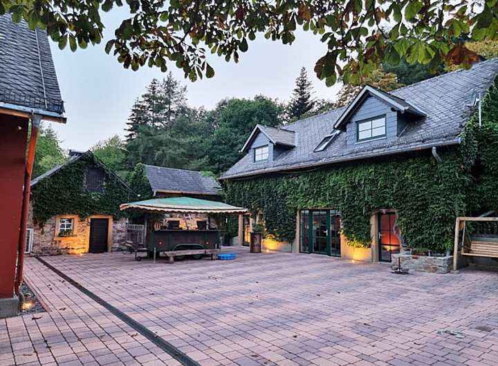Ein Juwel im Hunsrück in Alleinlage, Maklerfrei, Voll ausgestattetes Gästehaus, Kneipe, Büro, Werkstatt, Backes, Teich, großer/ alter Obstbaumbestand, Pferdestall, ca 4,5 Ha Wiesenland