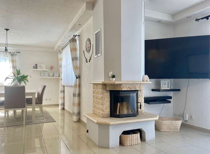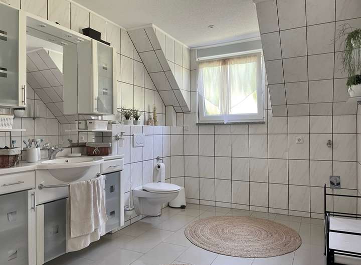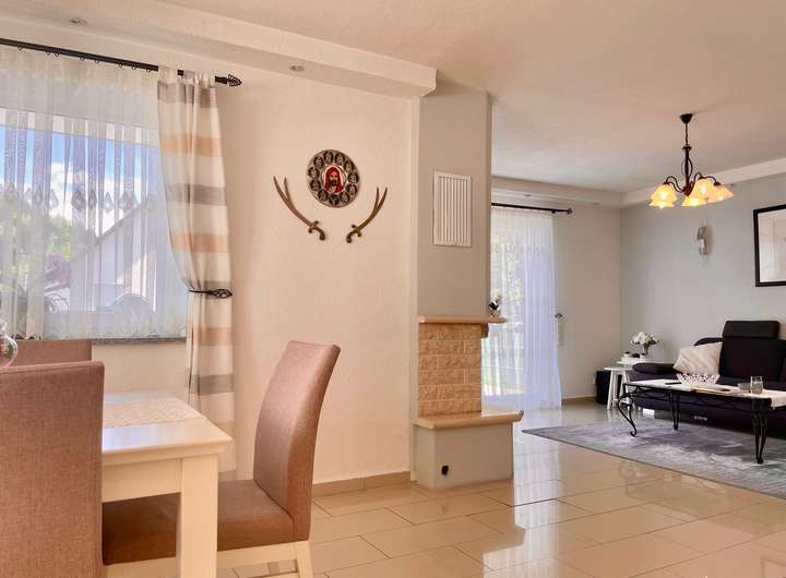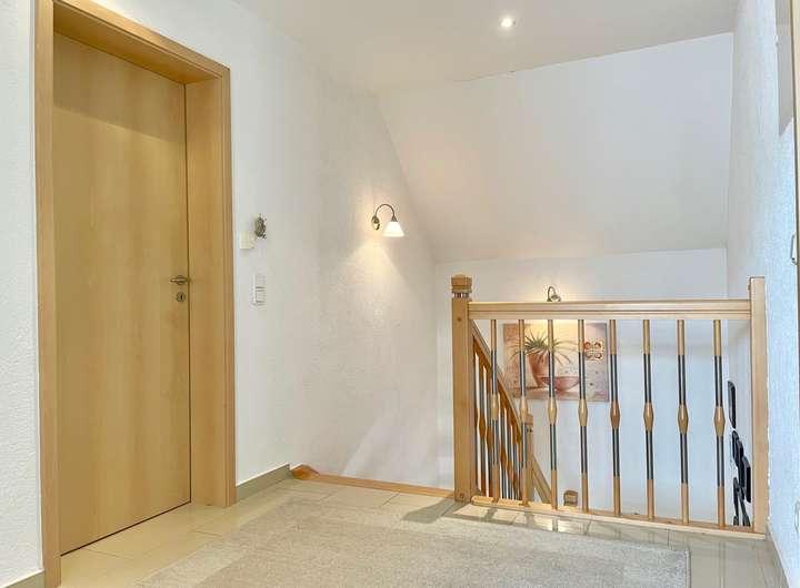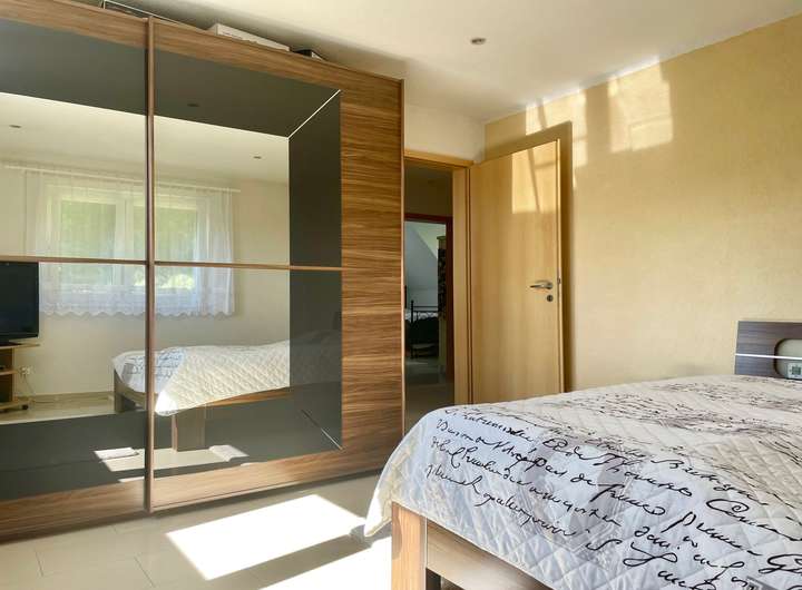 Hier können Kinder ungestört auf der Straße spielen! Dieses Einfamilienhaus mit Einliegerwohnung befindet sich am Ende einer Sackgasse. Es wurde im Jahr 2004 auf einem ca. 657 m² großen Grundstück erbaut und verfügt über eine Wohnfläche von insgesamt ca. 210 m². Der Eingangsbereich der ca. 162 m² großen Hauptwohnung liegt im Untergeschoss. Über eine Treppe erreichen Sie den modernen Wohn-/Essbereich der Immobilie. Auf der gleichen Ebene befinden sich die Küche, ein Abstellraum, ein Bad mit Dusche sowie ein weiteres Zimmer. Das Obergeschoss verfügt über drei Schlafzimmer und ein Badezimmer mit Eckwanne.