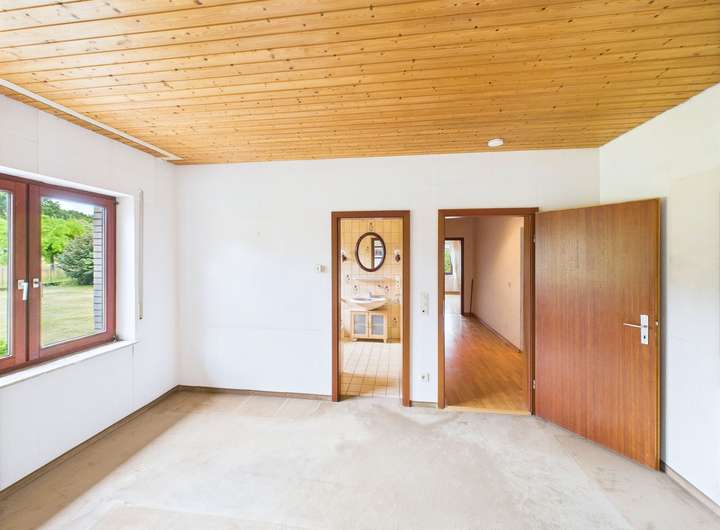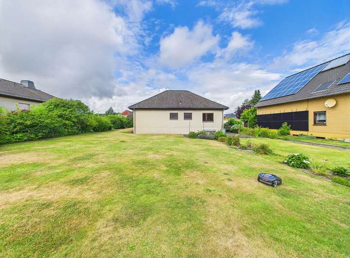 Dieser großzügige Bungalow bietet mit rund 140 m² Wohnfläche und einem weitläufigen Grundstück von etwa 1.250 m² viel Raum für die ganze Familie. Das Haus verfügt über vier gut geschnittene Zimmer und überzeugt durch eine durchdachte Raumaufteilung. Wer zusätzlichen Platz benötigt, kann das Dachgeschoss ausbauen und so bis zu ca. 80 m² zusätzliche Wohnfläche schaffen. Ideal für ein Gästezimmer, ein Homeoffice oder einen eigenen Rückzugsort.