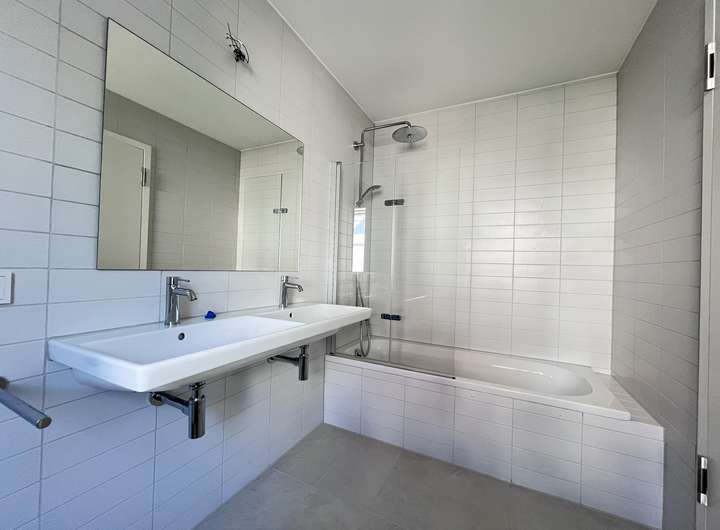 - Fliesen: In den Bädern Bodenfliesen und Wandfliesen. Teilweise Fliesen in der Küche bei der Arbeitsplatte.