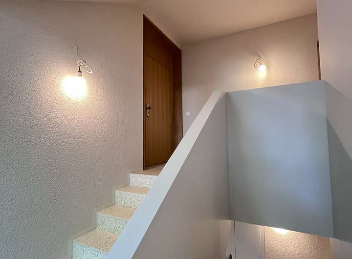 - Wände und Decken: Im Wesentlichen weiß verputzt.