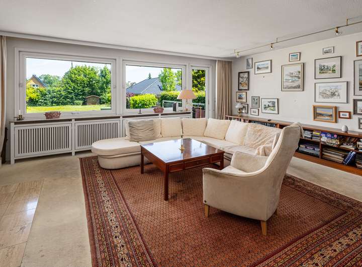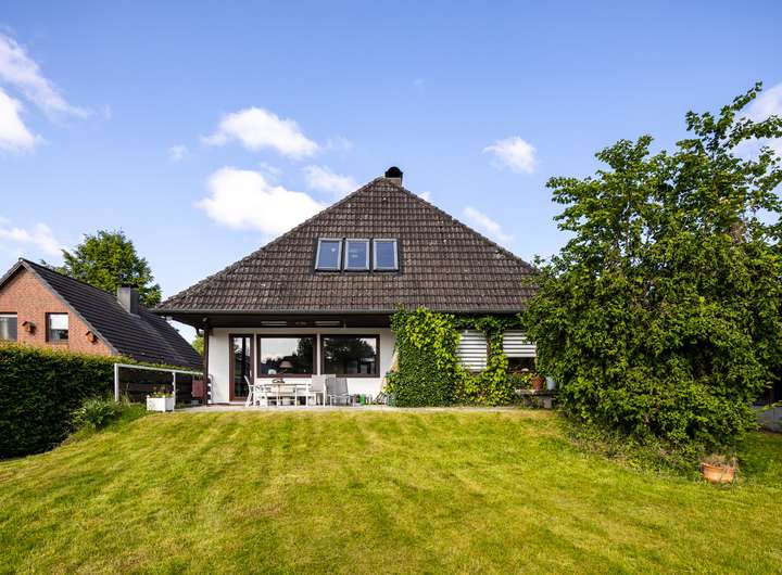 Auf einem ca. 1.169 m² großen Grundstück gelegen bietet die Immobilie rund 199 m² Wohnfläche verteilt auf fünf plus 3 halbe Zimmer viel Raum für Familienleben und individuelle Wohnideen. Das freistehende Haus wurde in Fertigbauweise im Jahr 1965 mit einem Vollkeller errichtet, 1971 erfolgte der Ausbau des Dachgeschosses. Die Fenster sind überwiegend aus Holz mit Einfachverglasung, teilweise sind Kunststofffenster mit Isolierverglasung vorhanden.