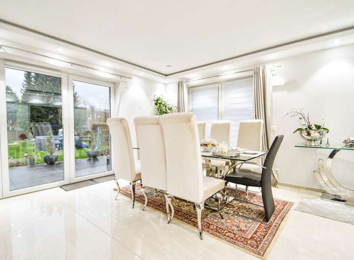 Der offene Wohn- und Essbereich ist großzügig gestaltet und bietet genug Platz für eine gemütliche Wohnzimmerlandschaft und einen großen Esstisch.
