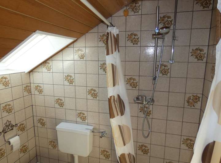 - Fliesen im Obergeschoss und Laminat im Spitzboden