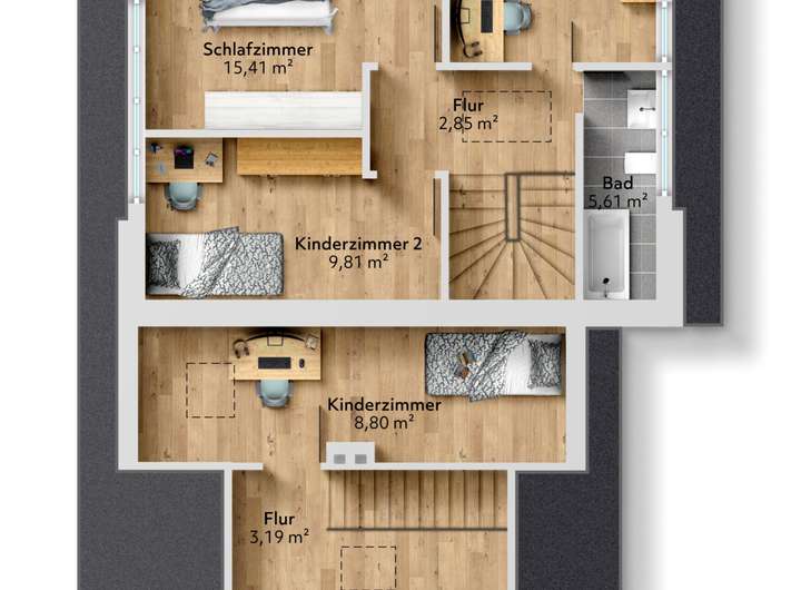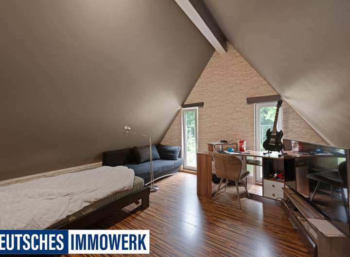 In beiden Häusern führt jeweils eine massive Holztreppe in das Dachgeschoss. Im vorderen Haus befinden sich hier zwei gemütliche Schlafzimmer sowie ein Flur, der die Raume verbindet. Das hintere Haus bietet im Dachgeschoss insgesamt drei Schlafzimmer sowie einen Dielenbereich und ein helles Badezimmer mit moderner Ausstattung. Ein besonderes Highlight bildet der voll ausgebaute Spitzboden des Hinterhauses, der über eine fest installierte Treppe erreichbar ist. Dieser Bereich eignet sich hervorragend als Arbeits- oder Hobbyzimmer. Ergänzend dazu verfügt ausschließlich das vordere Haus über ein vollunterkellertes Kellergeschoss. Hier stehen insgesamt vier funktional nutzbare Räume zur Verfügung.