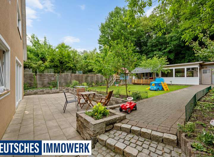 Somit bietet die Immobilie Ihnen nicht nur ausreichend Platz und Freiraum, sondern auch eine angenehme Wohlfühlatmosphäre dank der lichtdurchfluteten und gut geschnittenen Räume mit idealer Raumaufteilung. Neben dem Hauptgebäude verfügt die Immobilie zusätzlich über eine einladende Terrasse, einen Geräteschuppen und einem Hobbyraum sowie bis zu 2 Kfz-Außenstellplätze gleich vor der Haustür, die für bequemes Parken und zusätzlichen Komfort sorgen. Der Garten in Südausrichtung lässt nicht nur Kinderherzen höherschlagen und lädt Sie zur individuellen Gestaltung und zu angenehmen Stunden nach der Arbeit ein. Die Terrasse bietet Ihnen zusätzlich ausreichend Platz, um bei herrlichen Sonnschein auf der Südseite die Seele baumeln zu lassen.