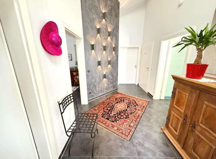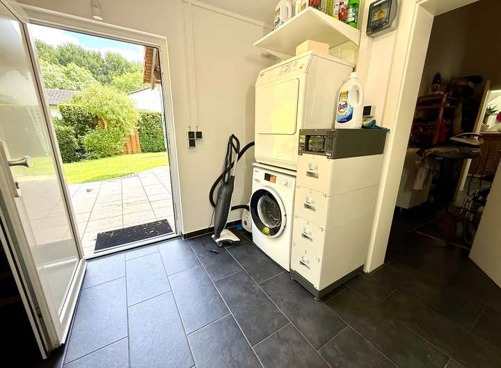 Das gesamte Haus ist nicht nur barrierefrei, sondern auch technisch auf dem neuesten Stand. Die Fußbodenheizung sorgt für wohlige Wärme, während die Kombination aus Wärmepumpe (Erdwärme), zwei Solaranlagen mit Batteriespeicher und intelligentem Strommanagement via Volbox für eine Energiebilanz sorgt, von der andere nur träumen können. So lebt es sich nicht nur stilvoll – sondern auch nachhaltig und kosteneffizient.
