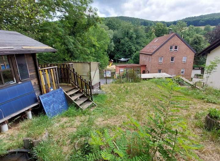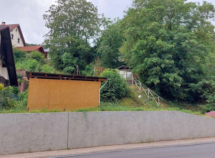 Auf dem Grundstück befindet sich ein Carport und eine Gartenhütte im oberen Bereich