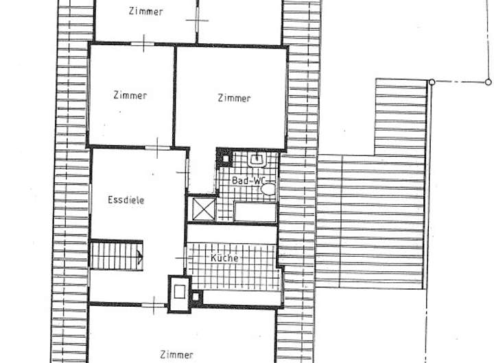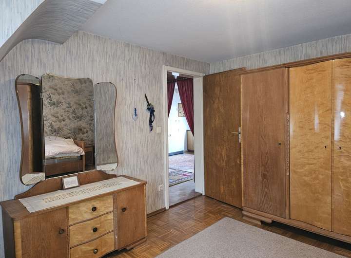 Auch im Dachgeschoss sind auf einer Wohnfläche von ca. 100m2 insgesamt 5 Zimmer mit Küche und Bad eingerichtet. Hier sind je nach Geschmack vereinzelt Modernisierungsarbeiten notwendig.