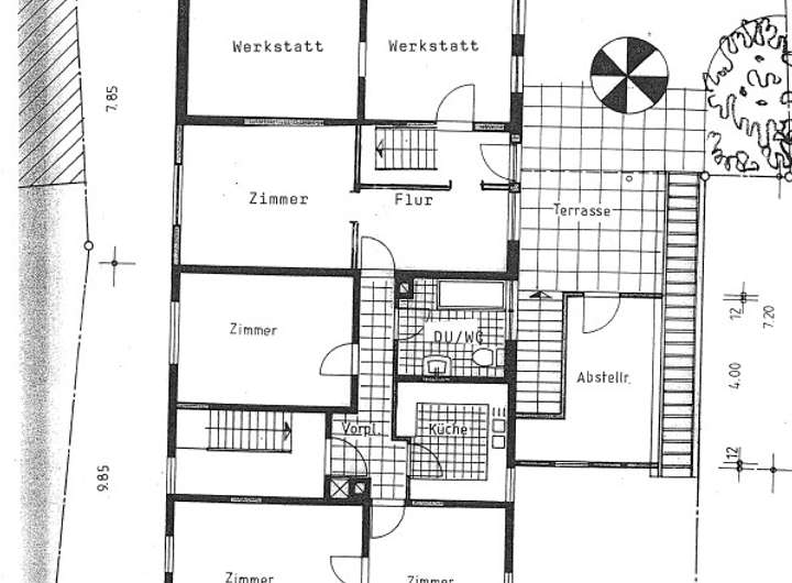 1993 wurde am Haus eine Garage angebaut mit einem Satteldach. Hier bietet sich von der großzügigen und teilüberdachten Terrasse im EG weiterer Stauraum an.
