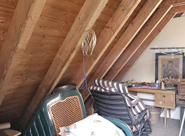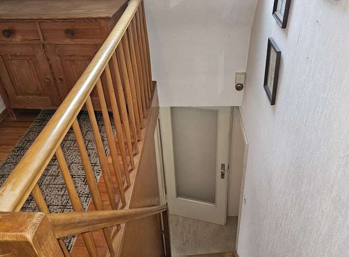 Zum Dachgeschoss des Hauses gelangt man entweder direkt durch das Ergeschoss, von außen durch die Waschküche oder im hinteren Bereich des Erdgeschosses über die Werkstatt.