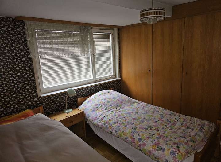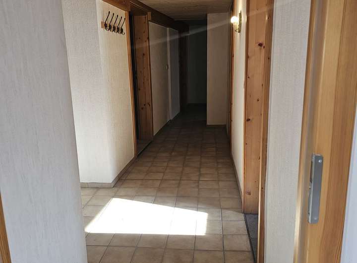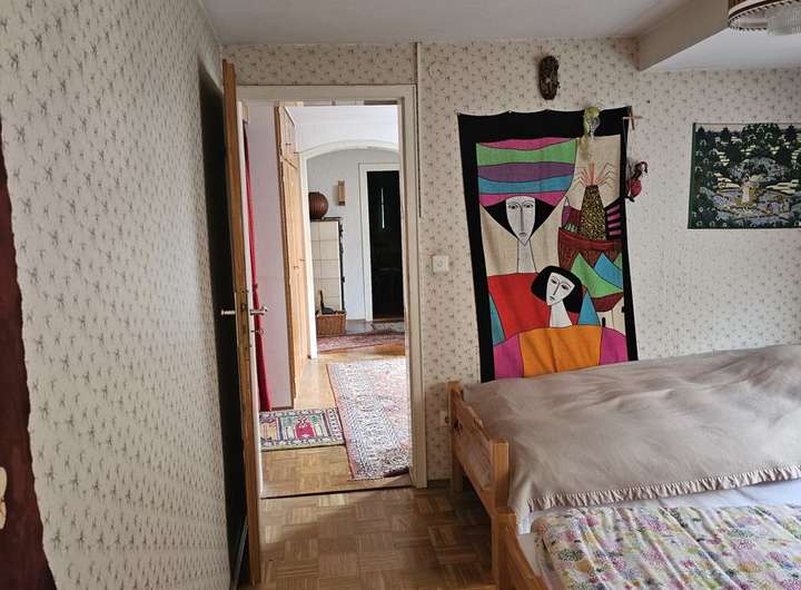 Die Böden sind aus Holzdielen, Parkett, Fliesen und Teppich. Die Zimmertüren sind zum Teil aus Naturholz.