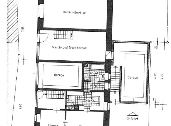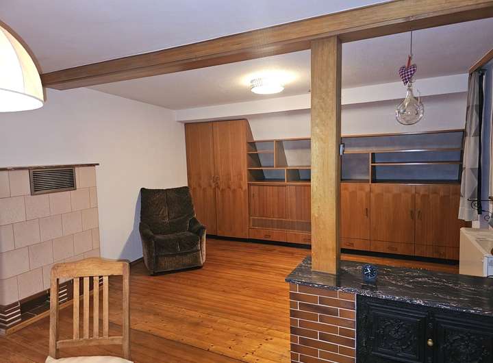 Im Untergeschoss befindet sich eine kleine 2-Zimmer-Einliegerwohnung mit ca. 41m² Wohnfläche, Küche und Bad. Diese Wohnung muss jedoch vollständig modernisiert werden.