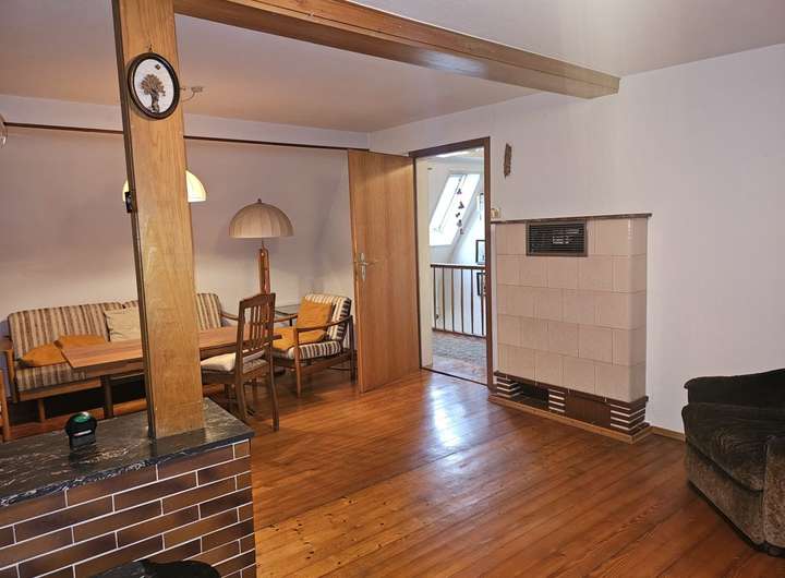 In der Wohnung im Dachgeschoss befindet sich ein funktionsfähiger Kachelofen.