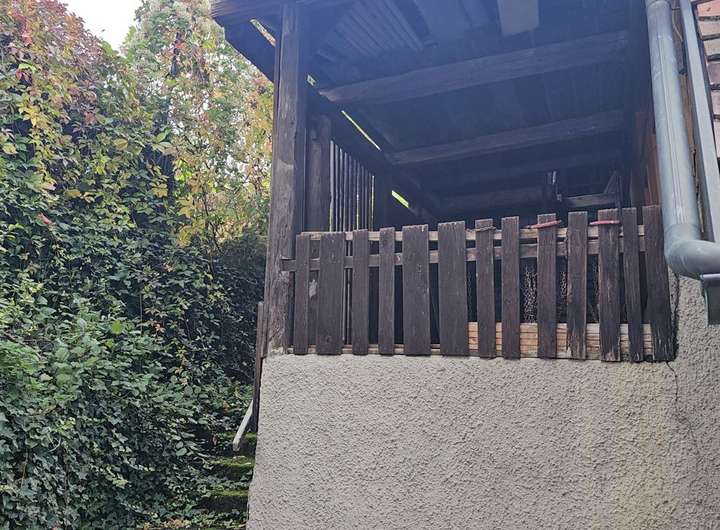 Die Fenster im ganzen Haus sind alte Holz-Doppelfenster und müssen erneuert werden. Vereinzelte Klappläden wurden bereits erneuert.