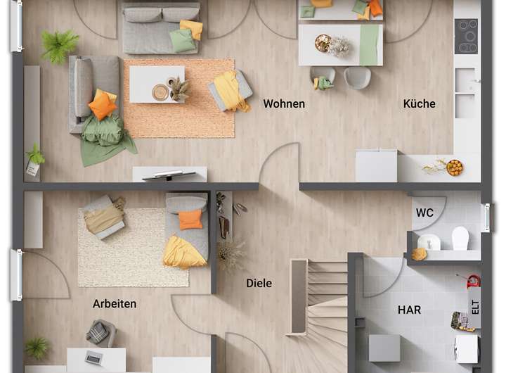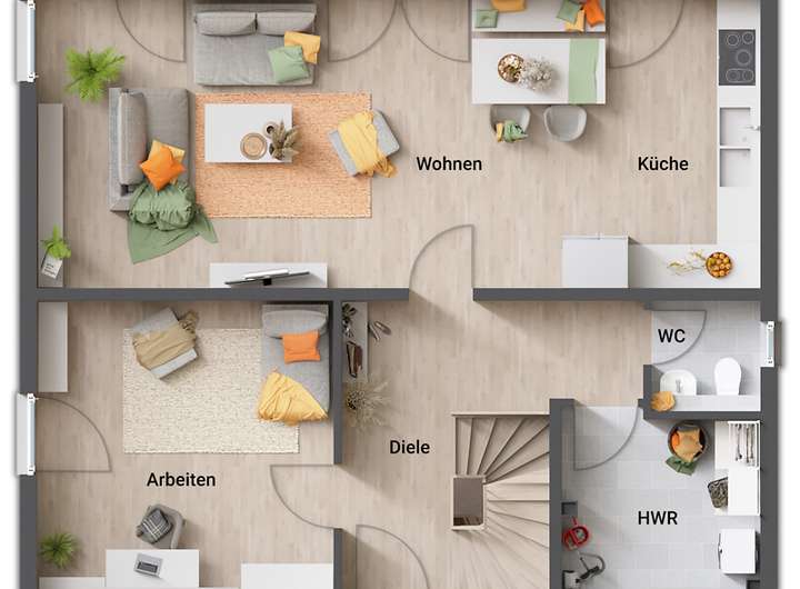 Als Beispiel dient hier unsere Stadtvilla Flair 152 mit bis zu 157 m2 Wohnfläche:
