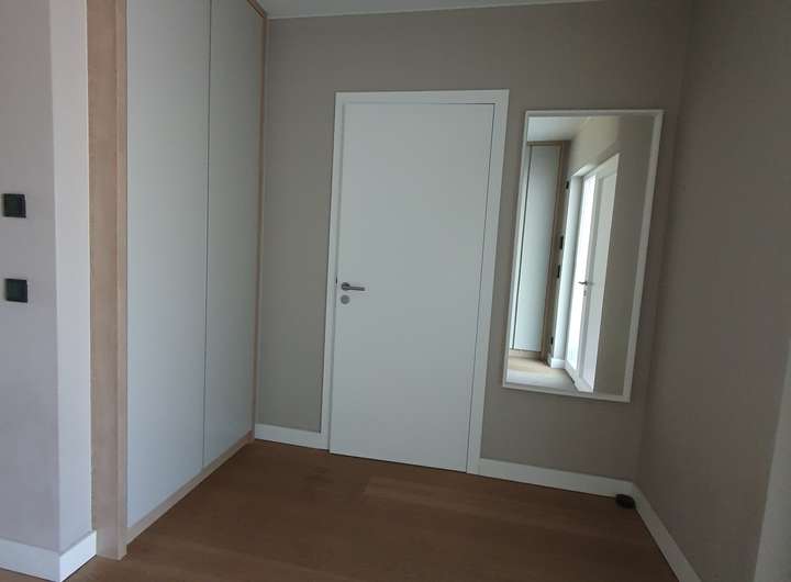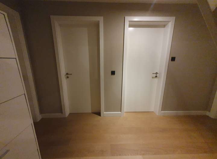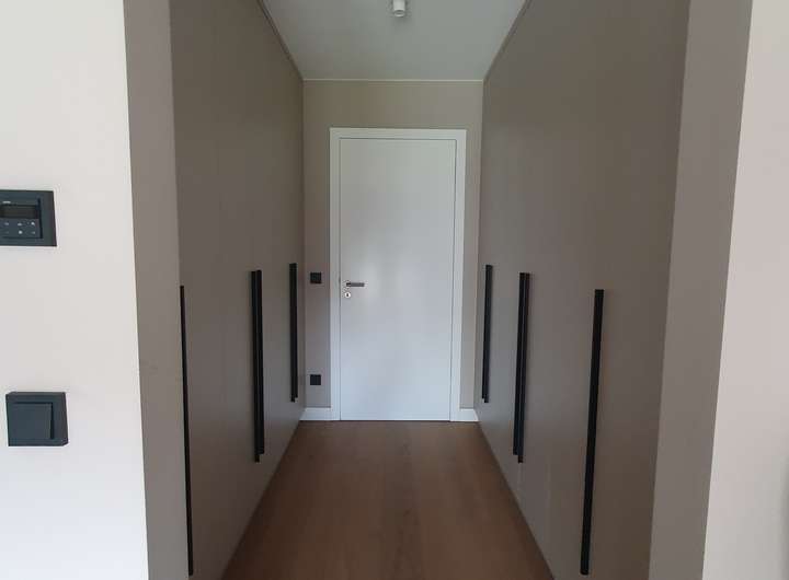 Weiße glatte Türen mit Edelstahl-Drückern