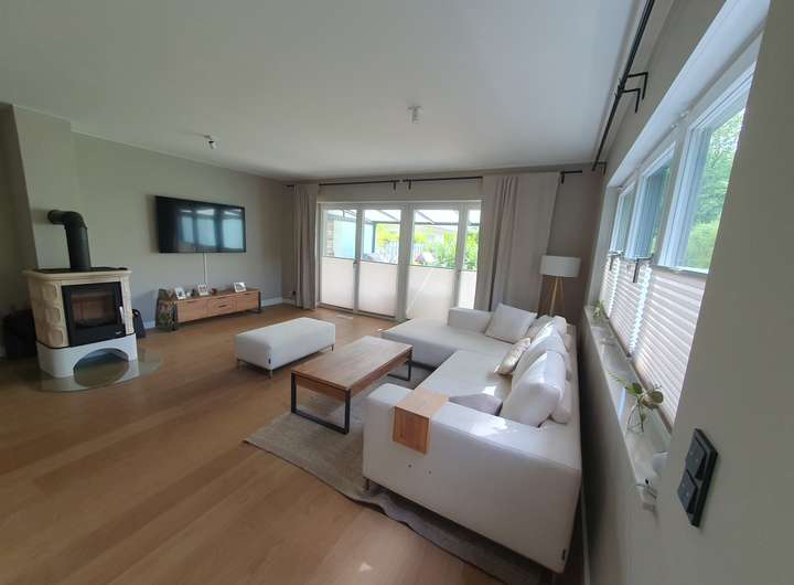 Ein weiteres Zimmer im Erdgeschoss ergänzt die 3 Schlafräume im Obergeschoss. Der große Vollkeller ist wohnlich ausgebaut und erweitert mit seinem rund 42 m² großem, gut