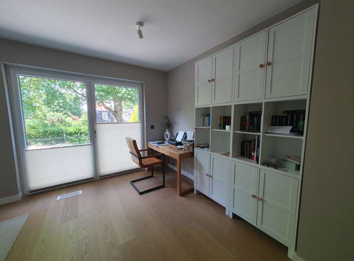 durch die Raumhöhe von ca. 2,64 m und den bodentiefen Fensterflächen, die sich zur großen Terrasse mit Südgarten