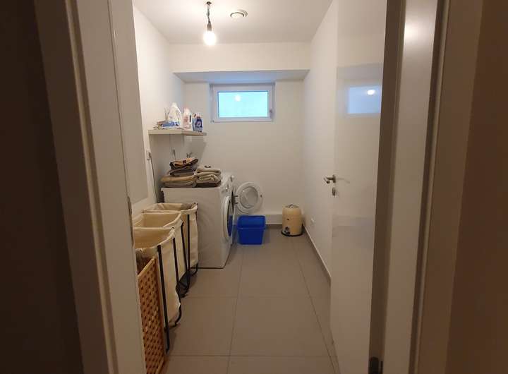Hauswirtschaftsraum mit Anschluss für die Waschmaschine und Wäschetrockner, Wäscheabwurf vom 1. OG bis in den Keller