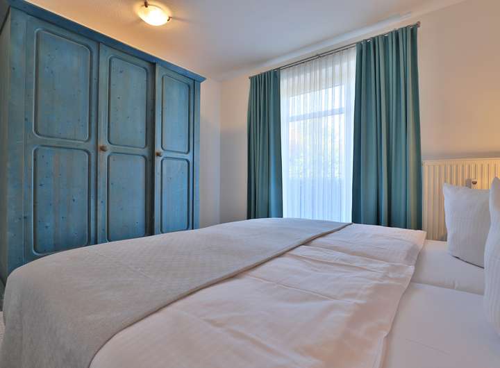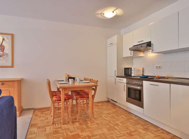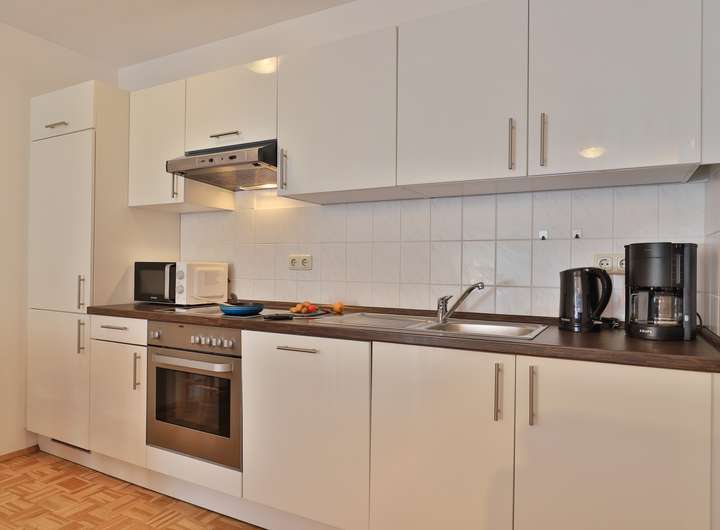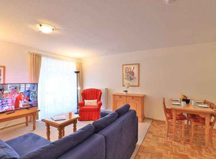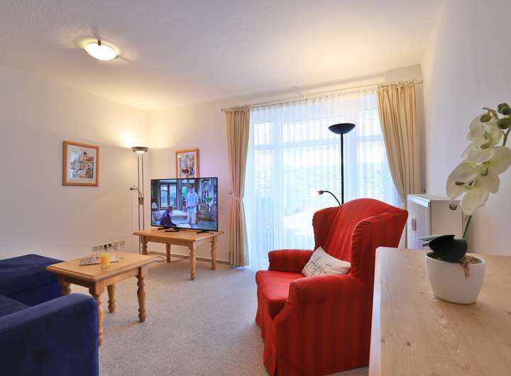 Die komfortabel möblierte 2-Zimmer-Eigentumswohnung befindet sich im Erdgeschoss der Apartmentanlage. Die Wohn- und Nutzfläche beträgt ca. 50 m² und ist ideal für eine Nutzung mit bis zu 4 Personen. Es empfängt Sie ein geräumiger Wohn-/ Essbereich mit Zugang zur Terrasse in Nordostlage. Im Wohnbereich ist ein Schlafsofa vorhanden, welches eine Aufbettung für die 3. & 4. Person ermöglicht. Die in den Wohnbereich integrierte Küchenzeile ist vollständig ausgestattet mit: Cerankochfeld, Backofen, Mikrowelle, Kühlschrank mit integriertem Gefrierfach, Kaffeemaschine, Wasserkocher, Toaster, Geschirrspüler u.v.m.. Angenehme Nächte ermöglicht das separate Schlafzimmer ausgestattet mit Doppelbett und einem großen Kleiderschrank.