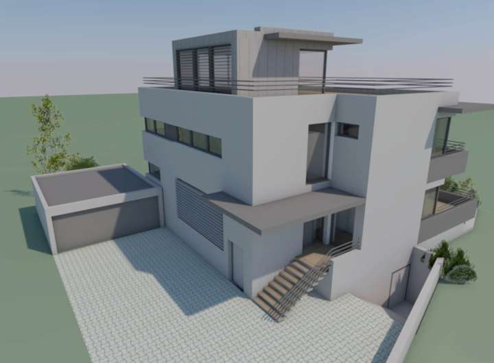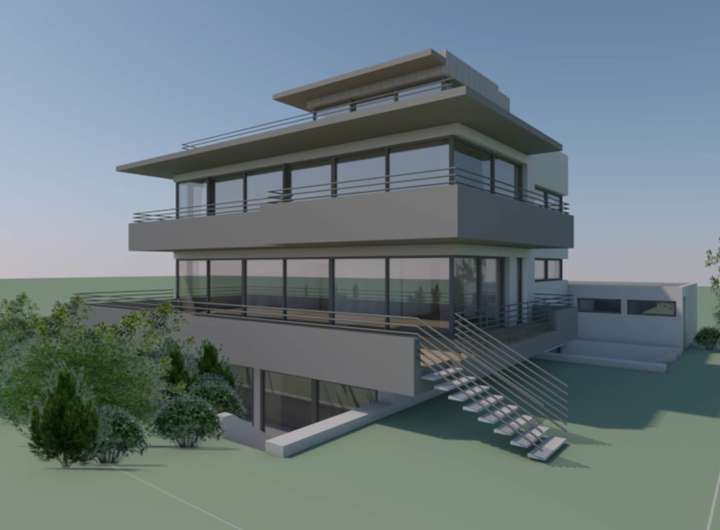 Auf einem sonnigen, 617 m² großen Grundstück befindet sich derzeit eine Bestandsimmobilie mit einer genehmigten Neubauplanung. Geplant ist der Bau einer exklusiven Designer-Villa mit fünf Ebenen sowie einer großzügigen Dachterrasse. Die vollständige Planung ist im Kaufpreis bereits enthalten und sieht wie folgt vor (ca. Angaben):