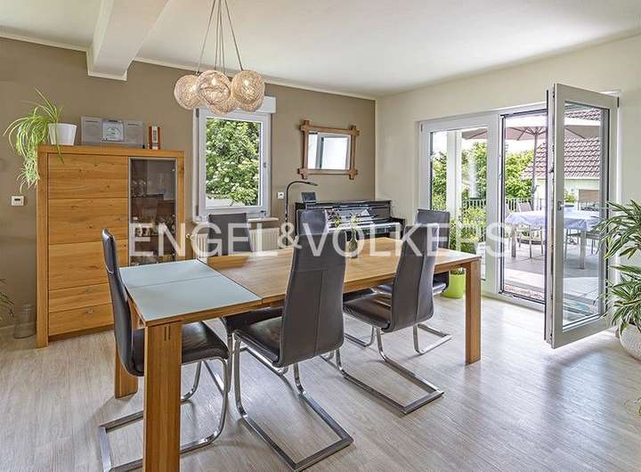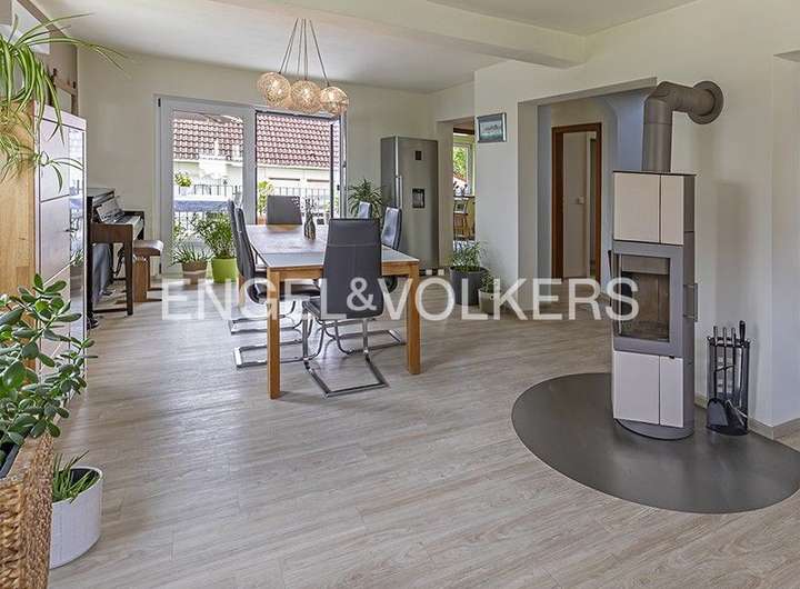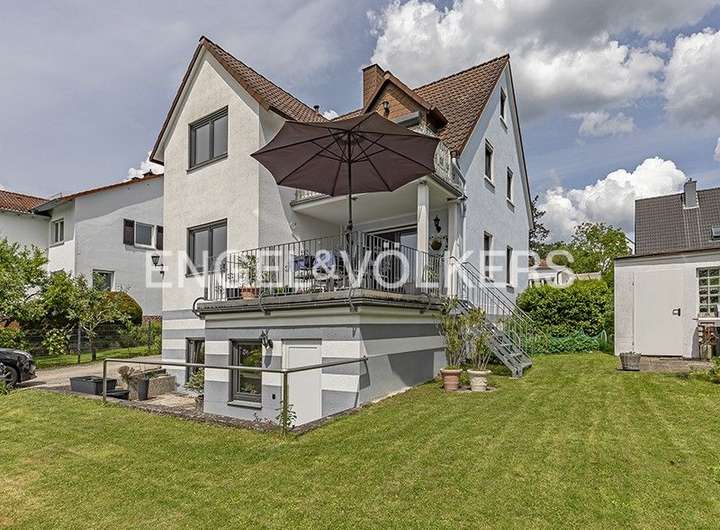 Sie sind auf der Suche nach einem großzügigen Haus mit hübschem Garten in familienfreundlicher Wohnlage? Dann sind Sie hier genau richtig! Ihr neues Zuhause bietet dank eines im Jahr 1993 generierten Anbaus einen ausgezeichneten Grundriss und viel Platz für große Familien. Es besteht die Möglichkeit Wohnen und Arbeiten zu kombinieren oder auch ein Au-pair-Zimmer einzurichten. Die Immobilie ist praktisch einzugsbereit, da sie konstant gepflegt und modernisiert wurde. Hervorzuheben sind aufwendige Sanierungsmaßnahmen im Jahr 2013 sowie die Erneuerung der Fenster mit zusätzlichem Einbau elektrischer Rollläden im gesamten Haus im Jahr 2022. Ein großer Vorteil sind die ruhige Wohnlage im Norden von Oberursel-Stierstadt und der nahe gelegene Stadtwald, der zu ausgiebigen Spaziergängen einlädt. Dennoch sind Kindergärten, Schulen und öffentliche Verkehrsmittel rasch erreichbar. Das einladende und helle Einfamilienhaus überzeugt im Erdgeschoss mit dem gut geschnittenen Wohnzimmer, welches einen direkten Zugang auf eine schön gestaltete Hochterrasse in perfekter Süd-West-Ausrichtung bietet. Dieser Bereich ist ideal um gemütliche Sommerabende zu verbringen. Für die kältere Jahreszeit wurde im Wohnzimmer ein Holzofen integriert, der angenehme Wärme spendet. Eine separate Küche, ein Abstellraum sowie eine Gästetoilette vervollständigen das Raumangebot im Erdgeschoss. Im ersten Obergeschoss sorgen vier schöne Schlafzimmer und ein Bad für Komfort sowie individuelle Rückzugsmöglichkeiten. Das Dachgeschoss wurde wohnlich ausgebaut und eignet sich hervorragend als Gäste-, Spiel- oder Hobbyzimmer. Zusätzlich punktet die Immobilie mit einem großen, hellen Raum im Souterrain, der einen eigenen Zugang zum Garten und ein angegliedertes Bad bietet. Ausreichende Stauflächen offerieren drei Abstellräume im Keller. Eine Garage sowie ein danebenliegender Außenstellplatz runden dieses schöne Angebot ab.