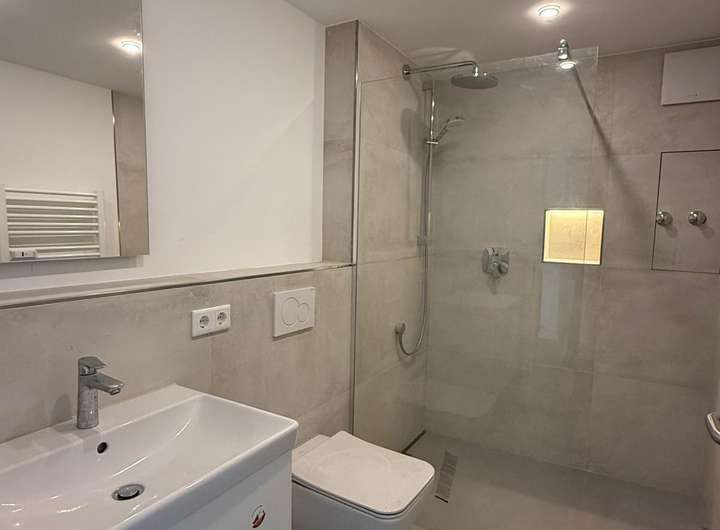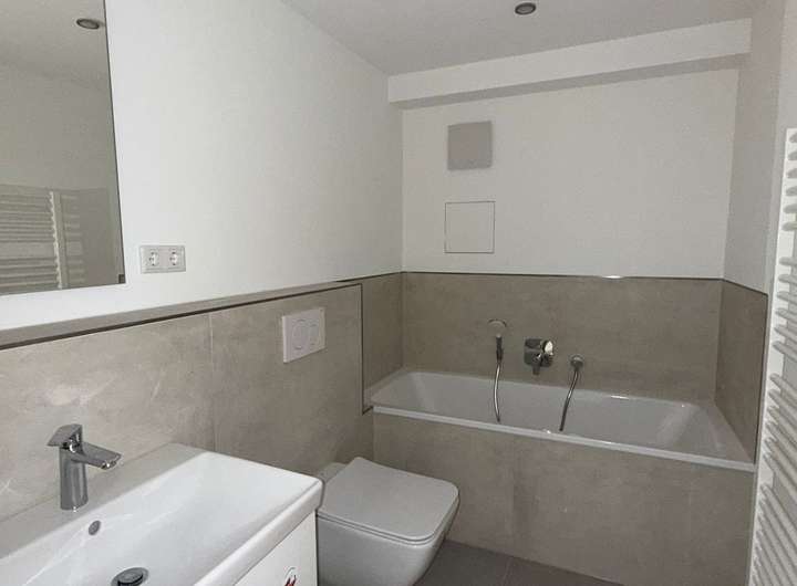 Zwei moderne Bäder mit zeitloser Sanitärausstattung