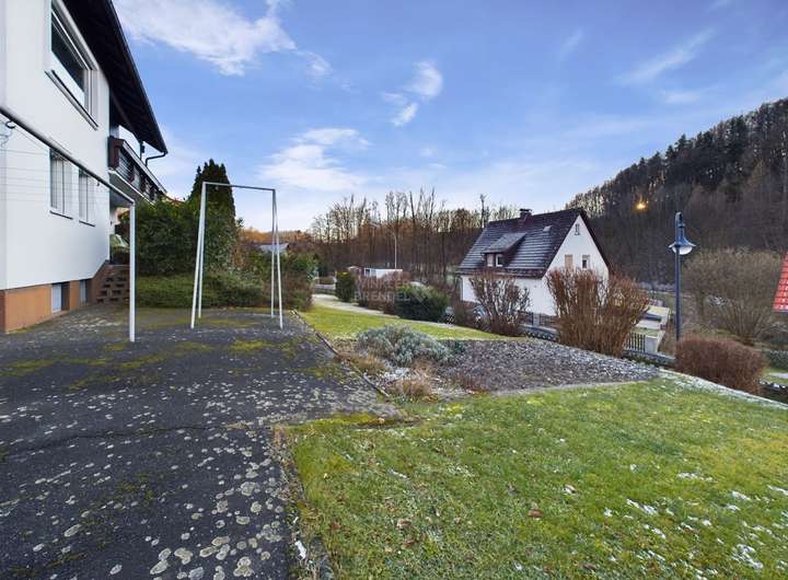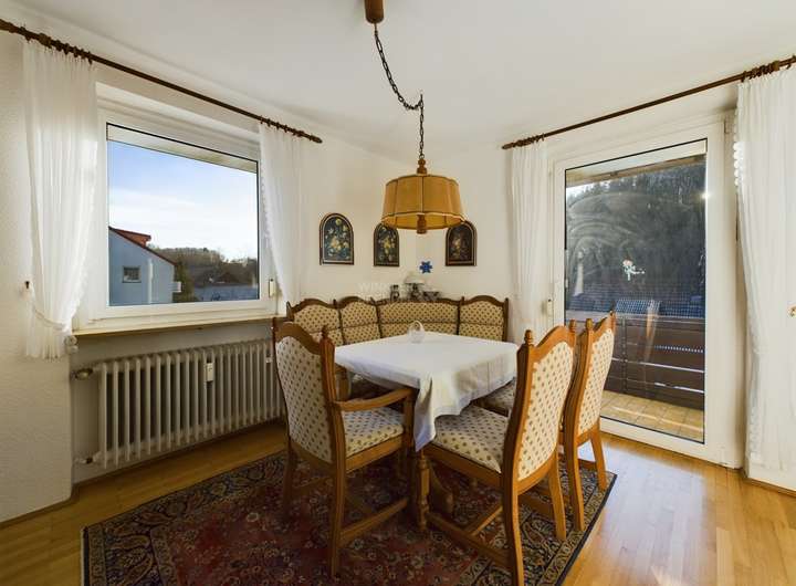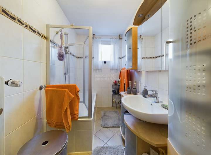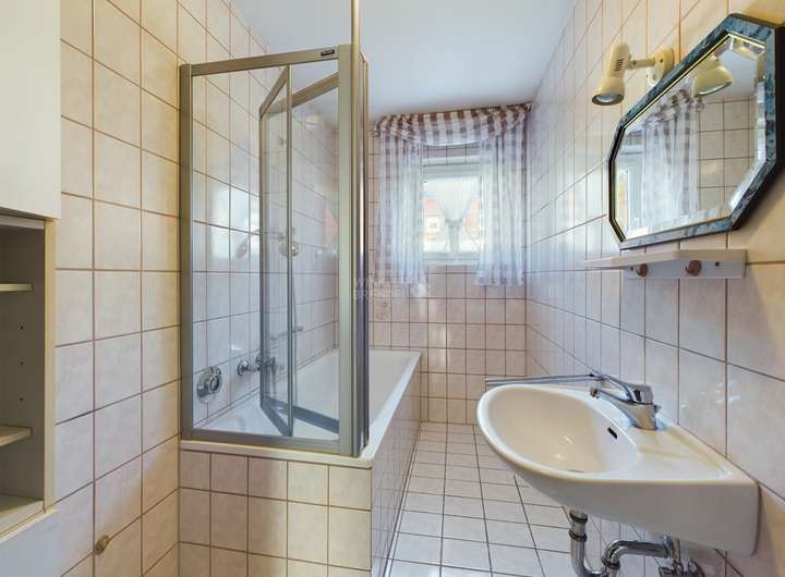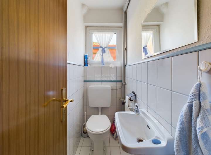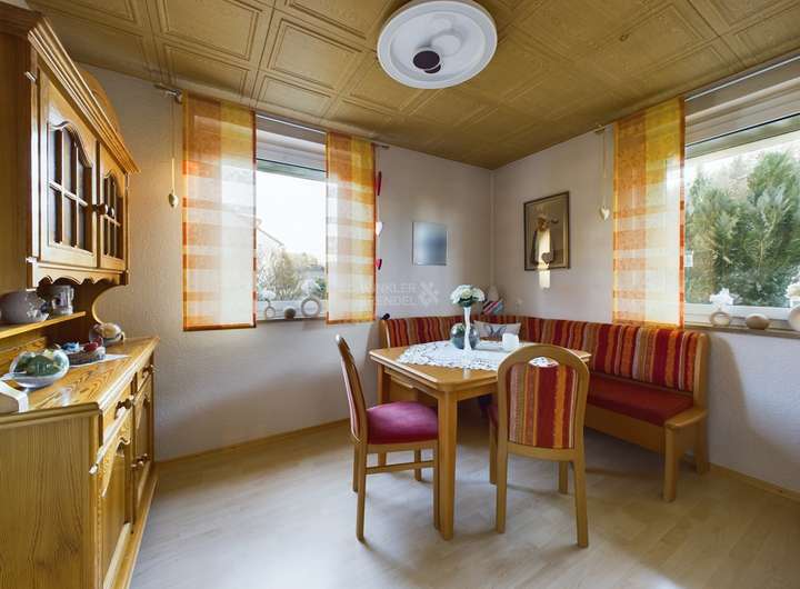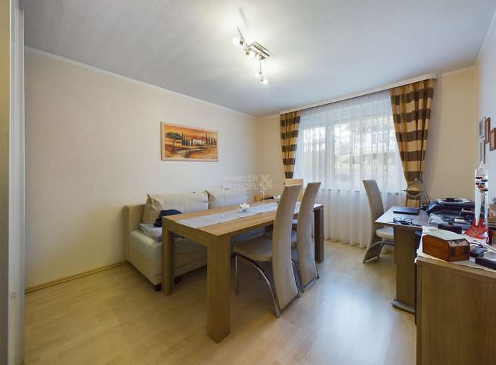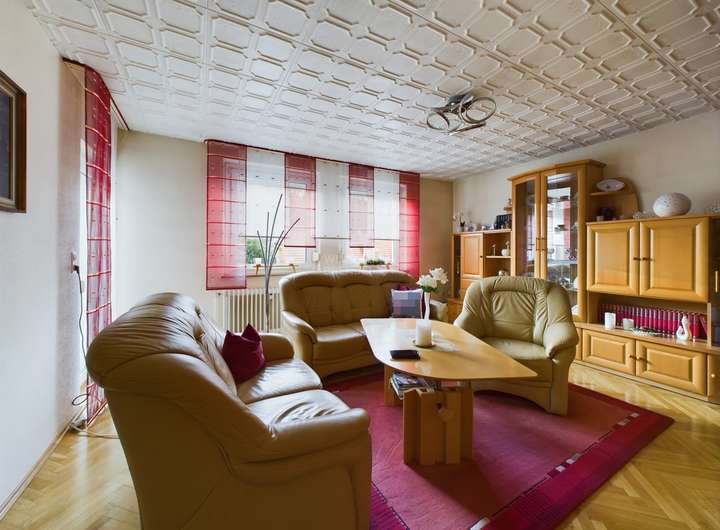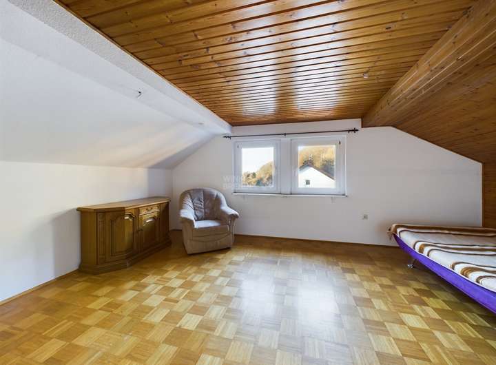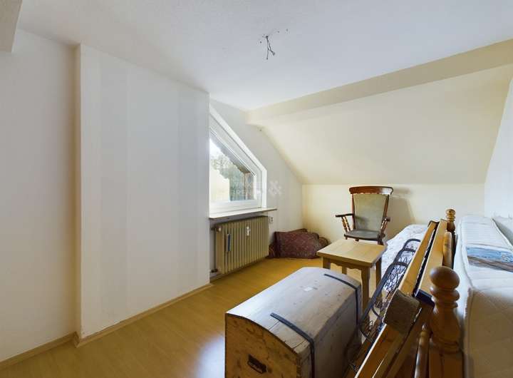 Dieses einladende Mehrfamilienhaus beherbergt drei Wohneinheiten mit einer Gesamtwohnfläche von etwa 216 m². Im Erdgeschoss befindet sich die ca. 83 m² große 4-Zimmer-Wohnung bestehend aus Wohn- und Schlafzimmer, Küche, Esszimmer, Büro, Bad, WC und Terrasse. Im Obergeschoss liegt die ca. 83 m² große 3-Zimmer-Wohnung und ist aufgeteilt in Wohn- und Schlafzimmer, Küche mit Essbereich, Kinderzimmer, Bad, WC und Balkon. Im Dachgeschoss ist die ca. 50 m² große 2-Zimmer-Wohnung mit Wohn- und Schlafzimmer, Küche, Bad und WC. Das Gebäude ist vollständig unterkellert und bietet zudem eine praktische Außentreppe. 2008 wurde das Bad im Erdgeschoss, 2011 das Dach und die Fenster im Dachgeschoss und 2019 die Heizung erneuert. Die Wohnung im Erdgeschoss ist derzeit vermietet. Die jährliche Mieteinnahme beläuft sich hier auf ca. 7.800 €.