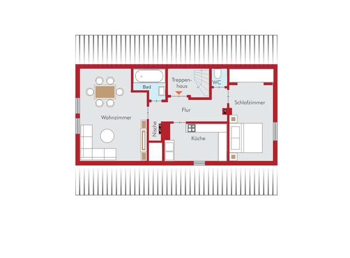 - DG ca. 50 m²: Wohn- und Schlafzimmer, Küche, Bad, WC