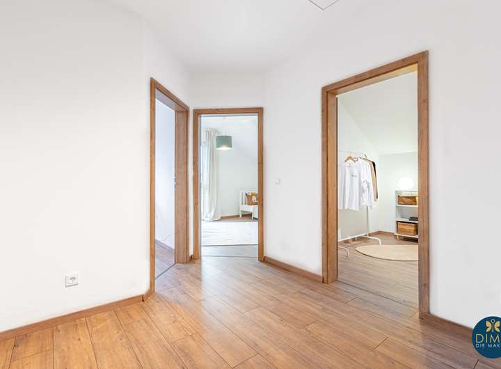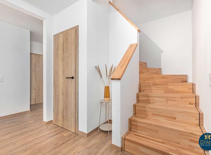 Das Gebäude erfüllt hohe energetische Anforderungen und steht für nachhaltiges Wohnen. Es verfügt über dreifachverglaste Kunststofffenster mit Wärmeschutzrollos, eine effiziente Wärmepumpenheizung sowie eine Photovoltaikanlage mit 6,5 Kilowatt Leistung und einem 5-Kilowatt-Energiespeicher. Die gesamte Haustechnik ist in ein Smart-Home-System integriert, das Heizung, Beleuchtung und Sicherheit komfortabel steuert. Zusätzlich besitzt das Haus eine QNG-Zertifizierung, die eine nachhaltige Bauweise und hohe Qualitätsstandards bestätigt.