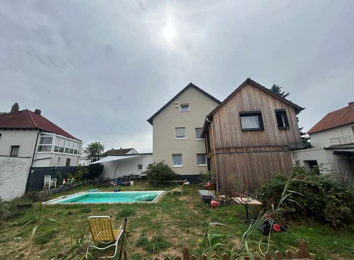 Dieses großzügige, freistehende Einfamilienhaus mit Anbau und zusätzlichem Baugrundstück bietet auf ca. 316 m² Wohnfläche vielfältige Möglichkeiten für komfortables Wohnen, Mehrgenerationennutzung oder eine Kombination aus Wohnen und Kapitalanlage. Das Haus wurde im Jahr 1957 erbaut und im Jahr 2021 umfassend saniert. Es befindet sich auf einem insgesamt 986 m² großen Grundstück.