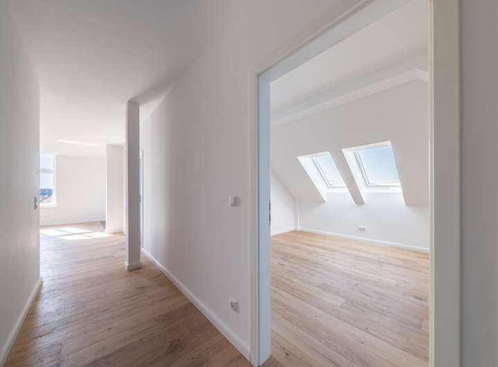 Die stilvolle Wohnung ist im Dachgeschoss gelegen und verfügt über ca. 130 m². Sie finden, neben zwei hochwertigen Badezimmern und der Küche, vier elegante Zimmer.