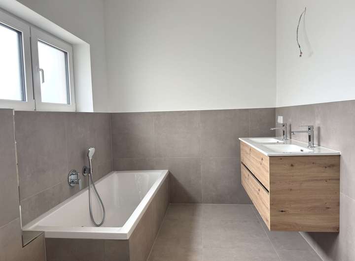 • Modernes Tageslichtbad mit begehbarer Dusche/Badewanne