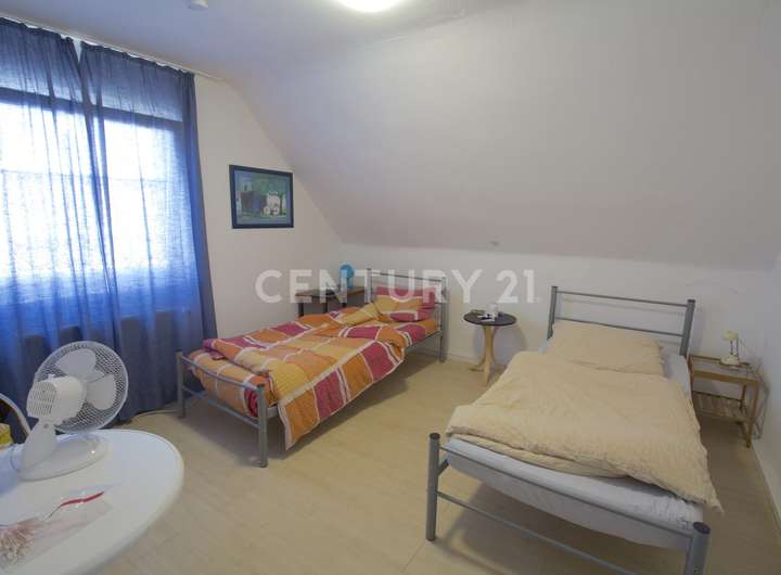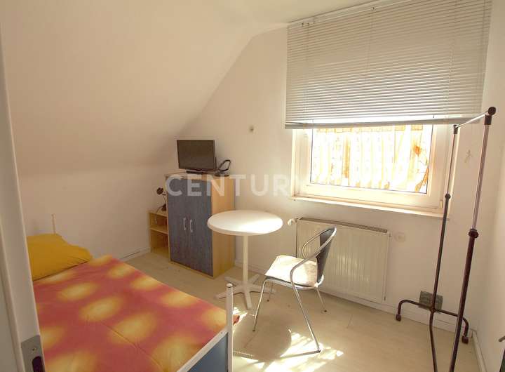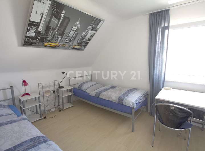 Das 1958 erbaute Einfamilienhaus wurde geschickt in zwei separate Wohneinheiten im Erd- und Dachgeschoss aufgeteilt – ideal für Mehrgenerationenwohnen oder die große Familie mit Wunsch nach Privatsphäre.