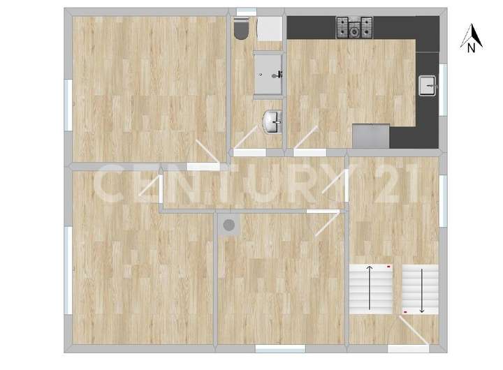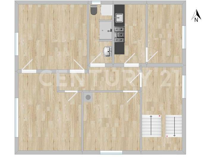 Jede Etage verfügt über drei großzügige Zimmer, eine separate Küche, Diele und ein modernes Bad, was vielfältige Nutzungsmöglichkeiten eröffnet. Zusätzlichen Stauraum bietet der praktische Spitzboden.