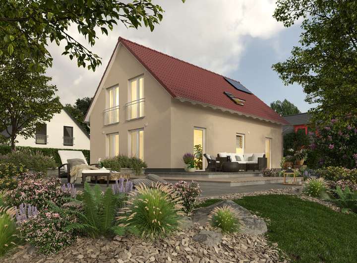 oder ein klassisches Einfamilienhaus mit Satteldach mit einer Wohnfläche von 100/110/113/125/128/134/142 m² Wohnfläche.