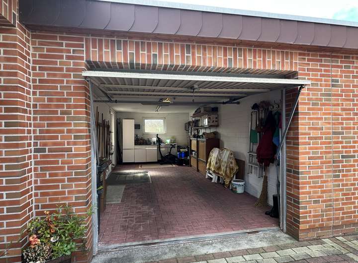 Neben dem Wohnhaus wird Sie auch die geräumige Garage mit elektrischem Sektionaltor überzeugen. Hier ist neben Platz für Ihr Auto auch noch ausreichend Fläche für Gartengeräte etc..