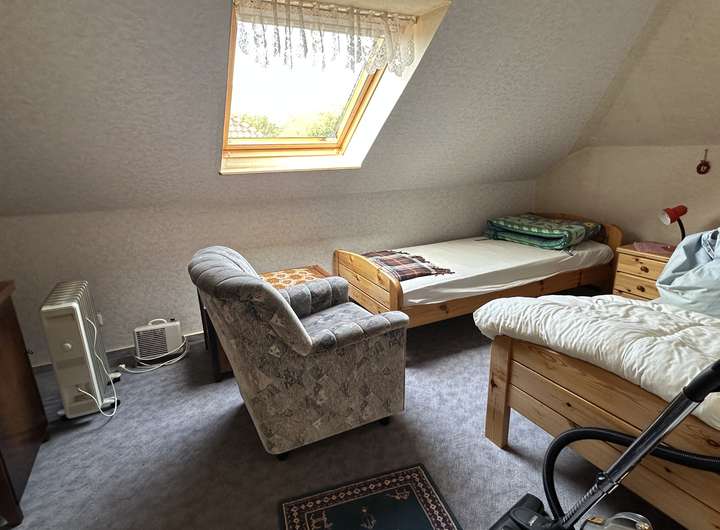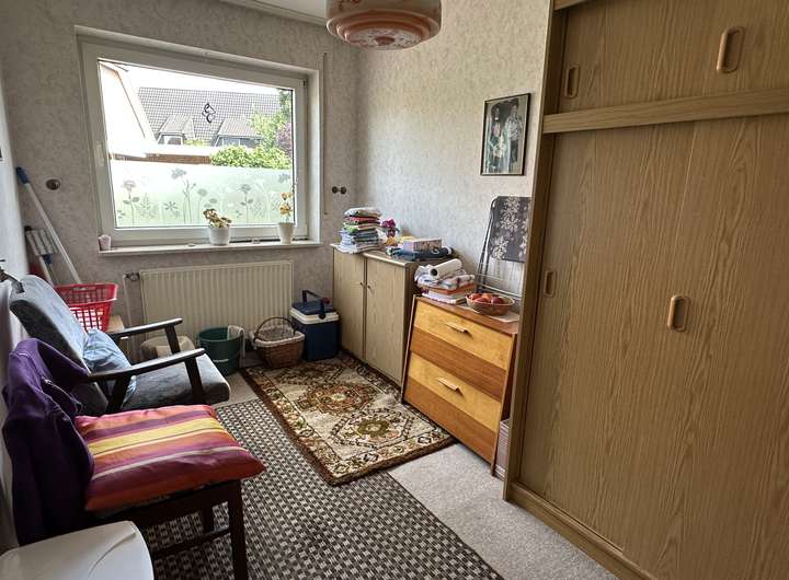 1990 massiv erbaut, besticht dieser Bungalow noch heute mit einem guten Standard. Komplett ebenerdig verteilen sich die rd. 85 m² Wohnfläche. Ein geräumiges Schlafzimmer, ein Gästezimmer/Büro, ein schönes Wohnzimmer mit Zugang zur überdachten Terrasse, die Küche mit angrenzendem Hauswirtschaftsraum, das freundliche Vollbad, das Gäste-WC und der Flurbereich bieten zwei Personen ausreichend Platz. Sollten Sie mehr Platz benötigen, so bietet das Dachgeschoss noch ausreichend Ausbaureserve. Eine feste Treppe und ein Raum ohne Heizung sind bereits vorhanden.