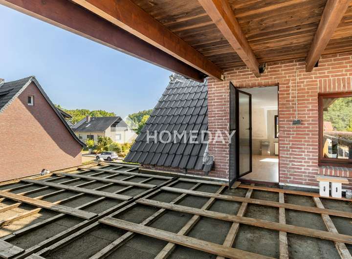 Die Wohnfläche beträgt insgesamt rund 242 Quadratmeter, die sich über acht Zimmer, Küchen- und Badbereiche verteilt. Durch die vorhandene Raumaufteilung besteht die Möglichkeit, eine zweite, eigenständige Einheit mit Terrasse einzurichten. Zwei separate Eingänge sind bereits vorhanden. Damit eröffnet sich Käufern die Option, die Immobilie flexibel an ihre individuellen Bedürfnisse anzupassen.