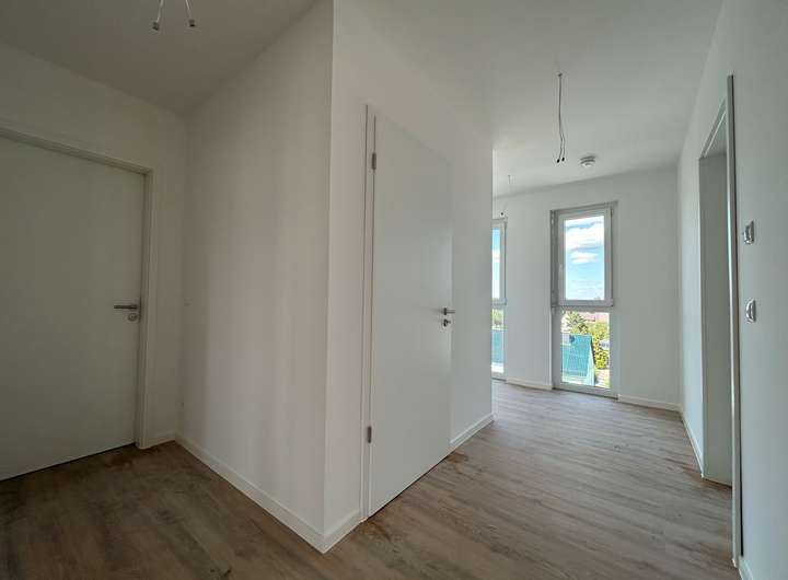 Die Wohnung verfügt über drei Zimmer, eine offene Wohnküche, ein Bad mit Badewanne, ein Balkon und einen Abstellraum mit Waschmaschinenanschluss.