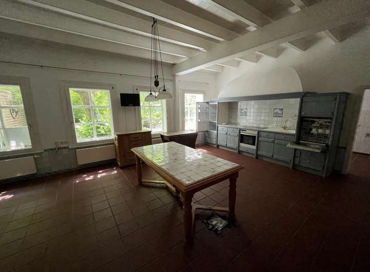 Neben dem Eingang befindet sich ein Empfangsraum, dahinter ein Büroraum mit zwei WCs. Im hinteren Bereich des Objektes befinden sich sechs Ferienwohnungen. Alle sind mit einem Badezimmer ausgestattet. Zudem gibt es im hinteren Bereich des Wohnhauses Pferdeboxen und reichlich Stauraum. Hier wurde und kann aufgrund der Einrichtungen auch wieder eine Besamungsstation betrieben werden.