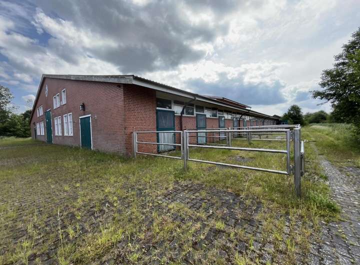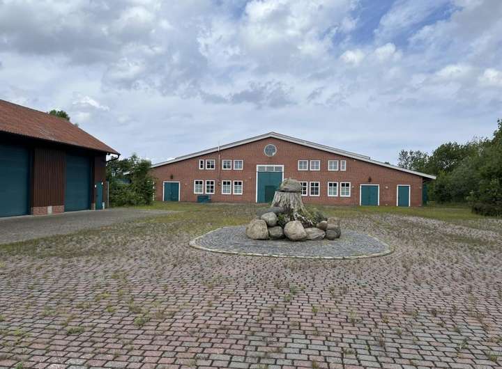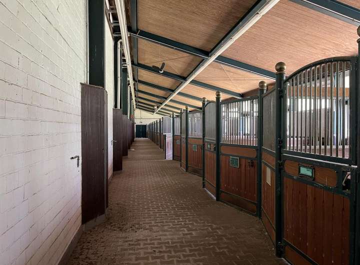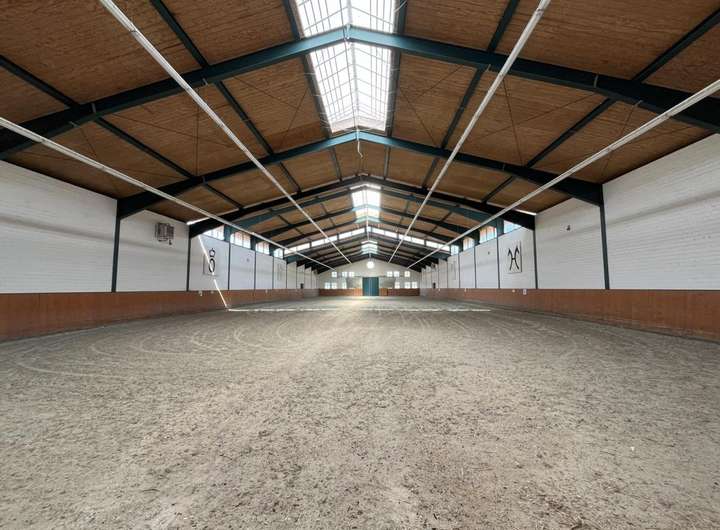 Im hinteren Teil des Grundstücks befinden sich eine große Lagerhalle und eine Reithalle im Olympiamaß, 26 Boxen und zwei weiteren Ferienwohnungen. Die Sattelräume sind mit Edelstahl ausgestattet. Hinter der Reithalle gibt es eine Führanlage mit acht Fächern sowie ein weiterer Stall mit sechs Pferdeboxen für Fohlen, die alle mit Paddocks ausgestattet sind.