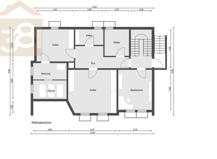 Der Keller überzeugt mit fünf Räumen plus dem Heizungsraum. Hier findet sich ausreichend Fläche zum Abstellen Ihrer Gegenstände oder Platz für Ihre Hobbys schaffen.